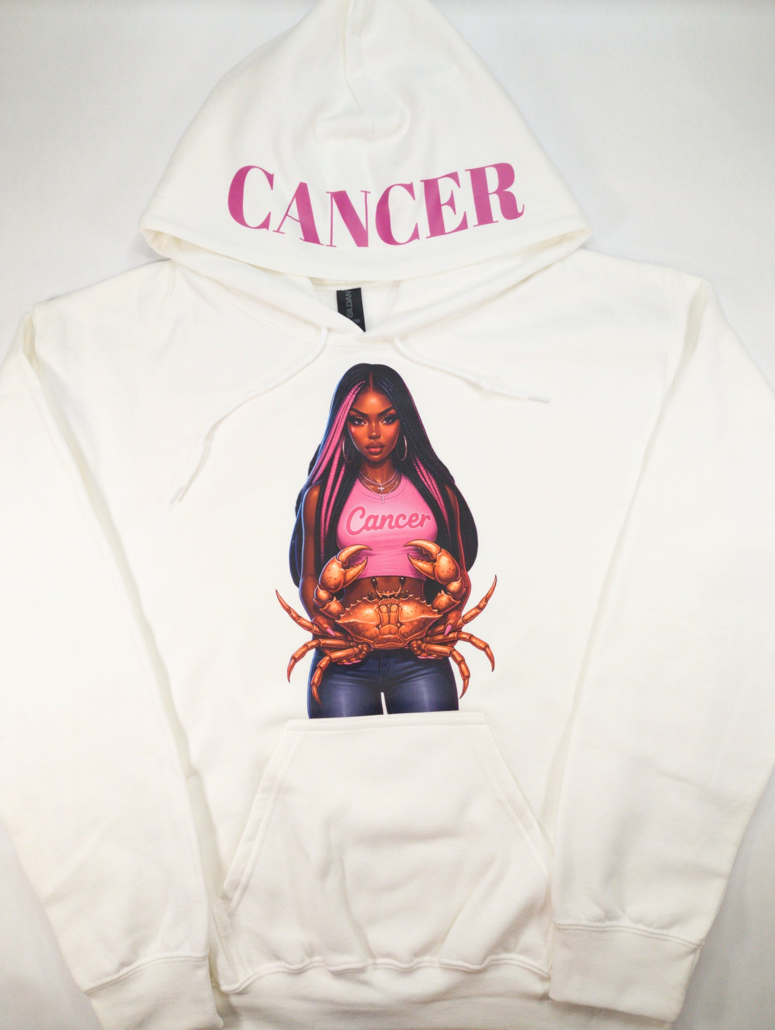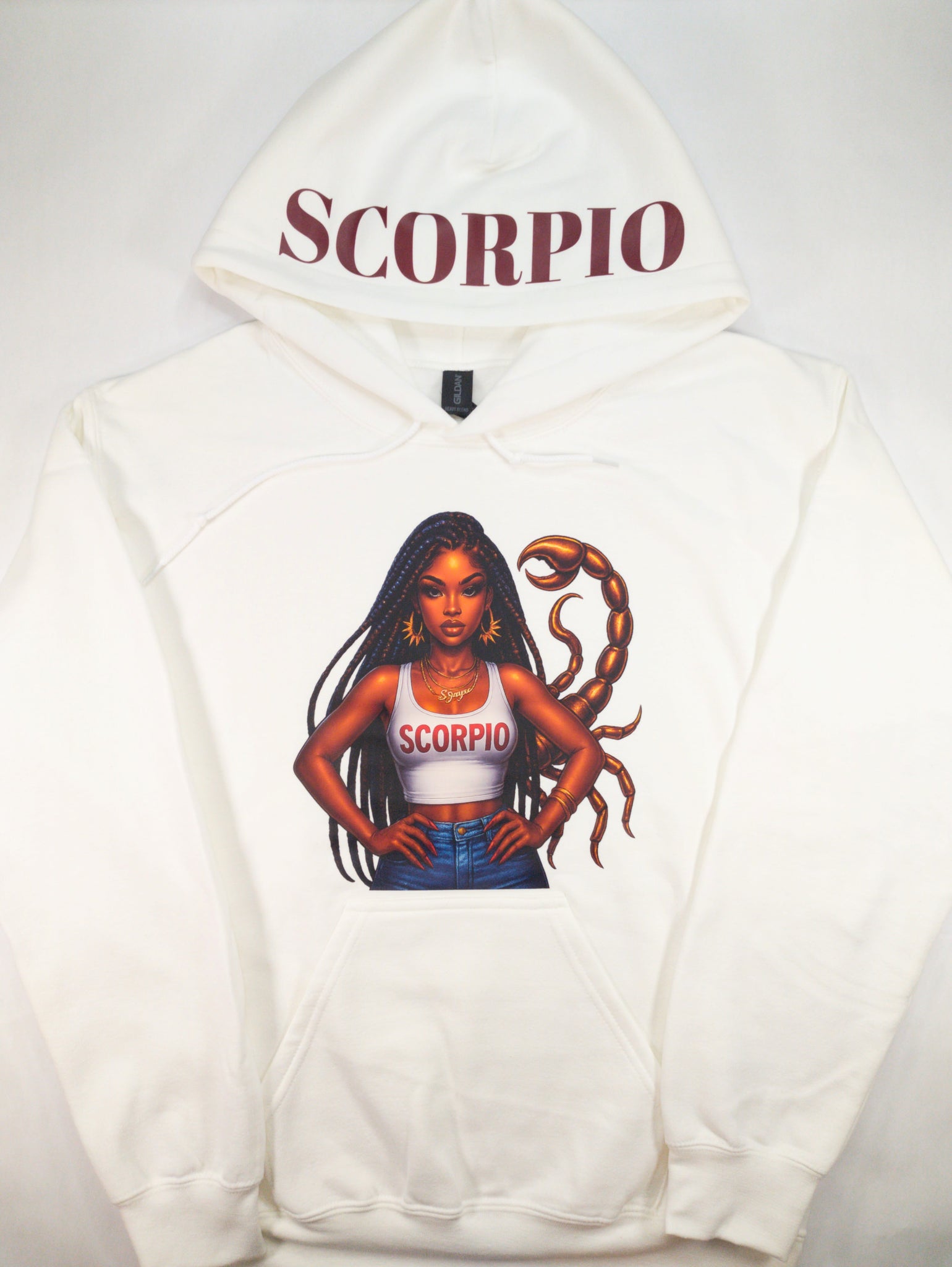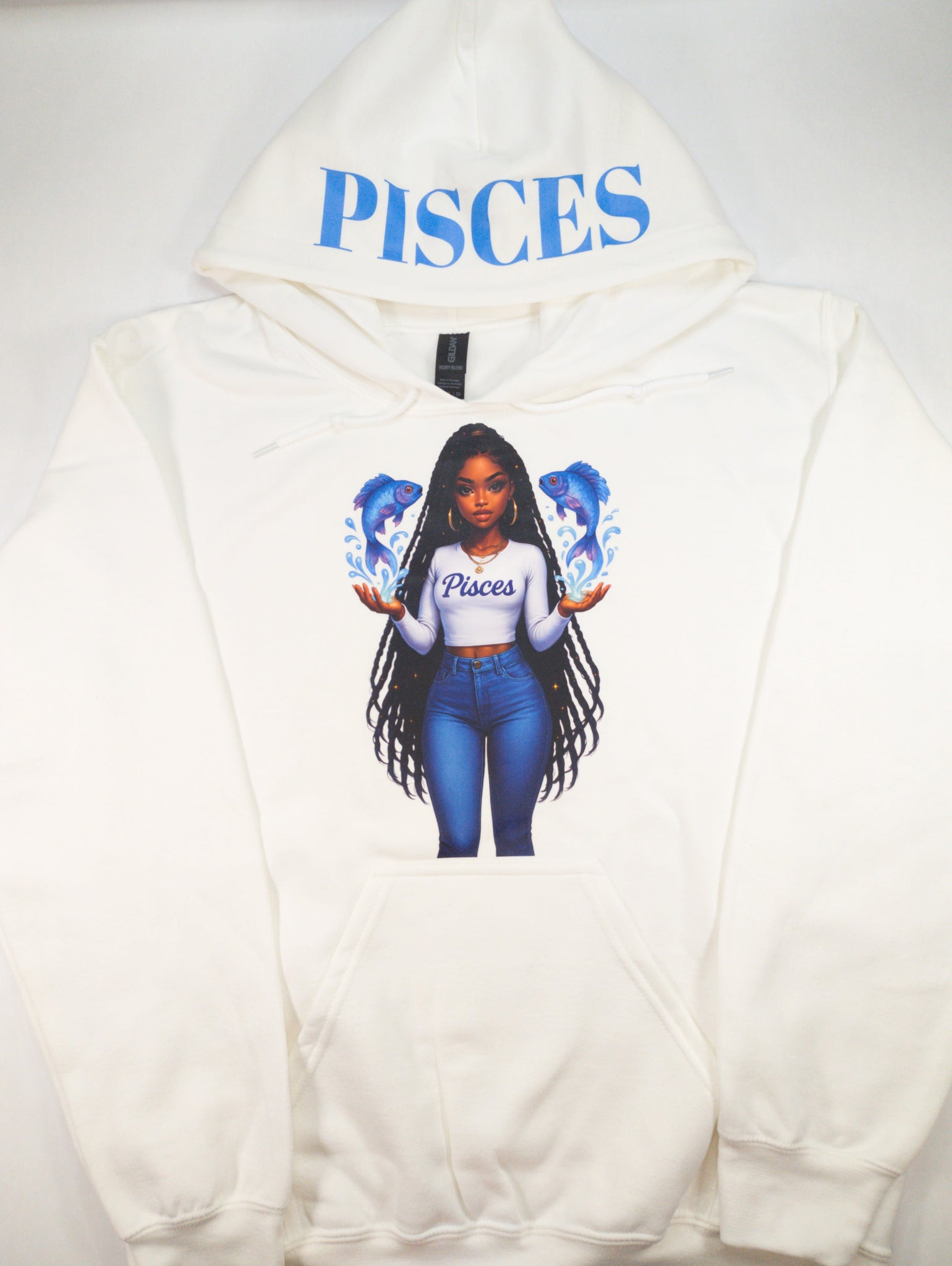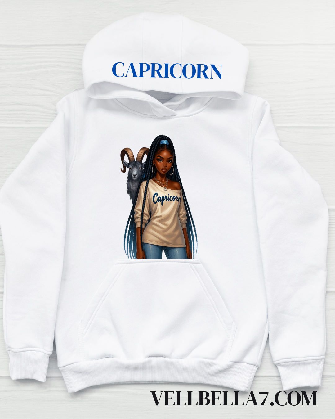 Embrace your astrological power with our Zodiac Girl Hoodie, a celebration of Black girl magic and cosmic energy. Each hoodie showcases a beautiful illustration of your zodiac girl on the front of a white canvas, with your sign's name proudly displayed across the hood. Designed with practicality in mind, the front pocket adds everyday functionality to this statement piece. Wear your sign with confidence and style, knowing you're representing the unique strength and brilliance of your celestial identity.