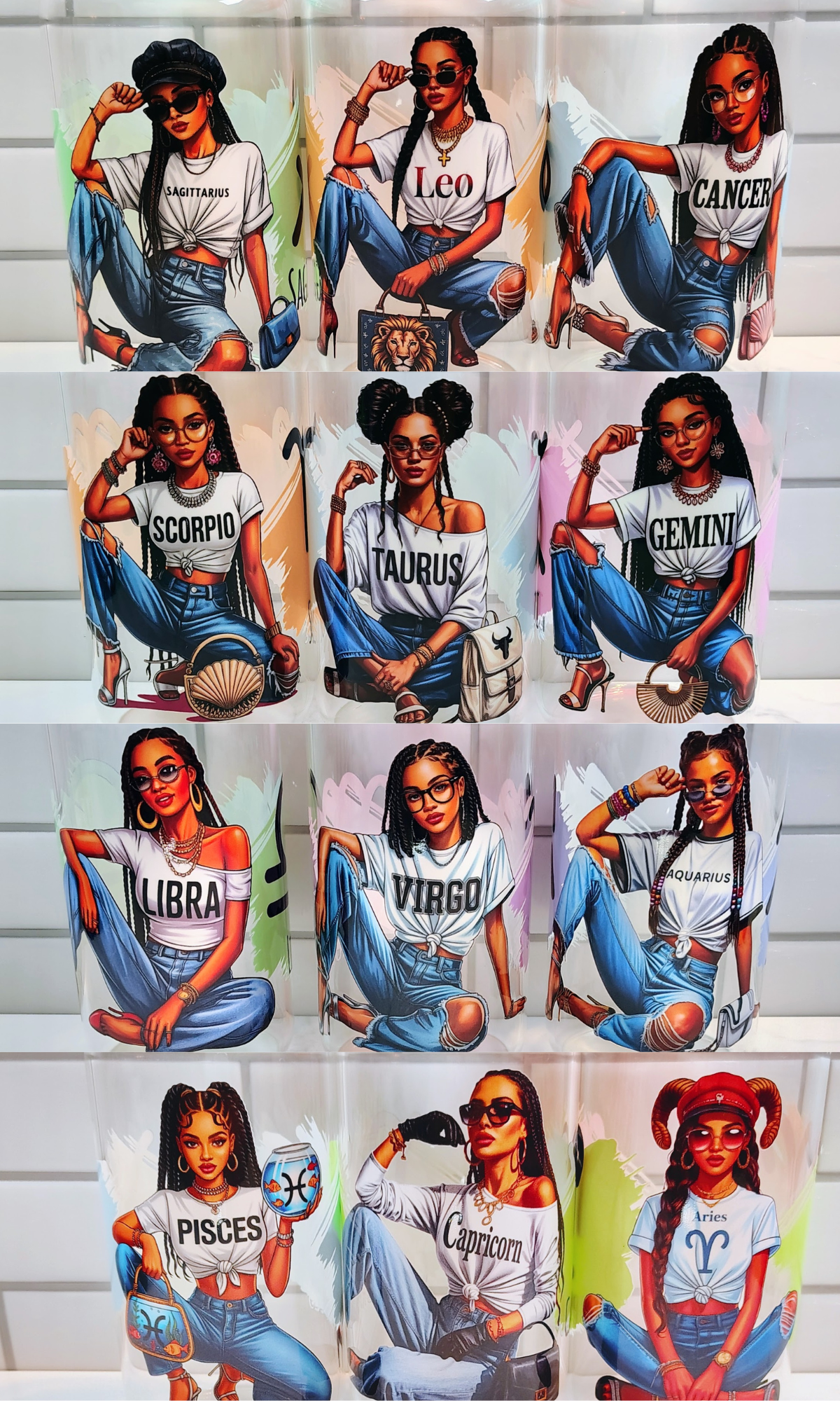 Celebrate your cosmic identity with our Zodiac Girls Glass Cups! Each beautifully designed cup features a unique girl character representing her astrological sign, with the zodiac name displayed on both sides and across her shirt. Perfect for daily sips or special moments, every cup arrives complete with a vibrant colored lid, straw, and a convenient cleaning brush. Whether you're a passionate Aries, dreamy Pisces, or any sign in between, find your celestial match and embrace the magic of the stars with every drink.