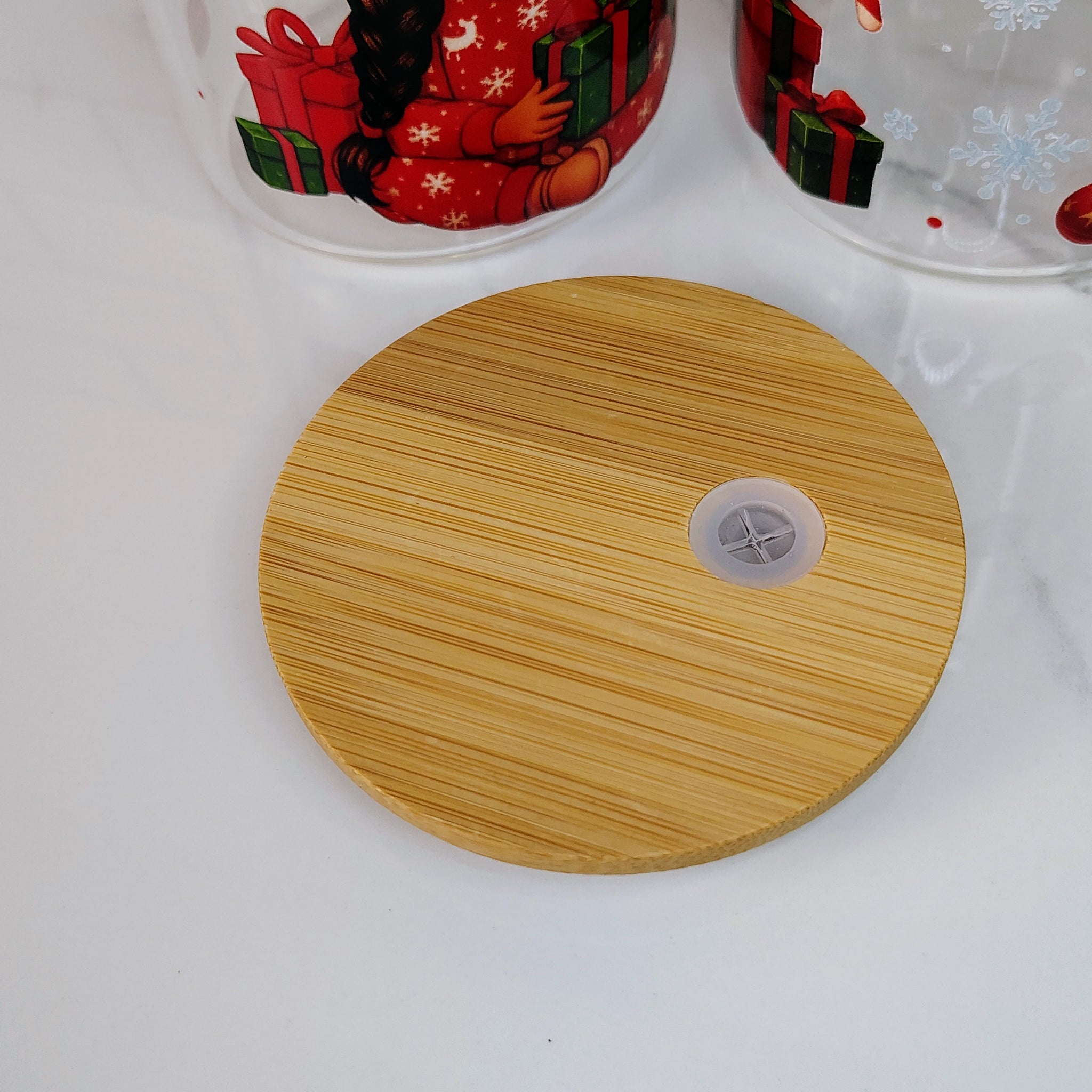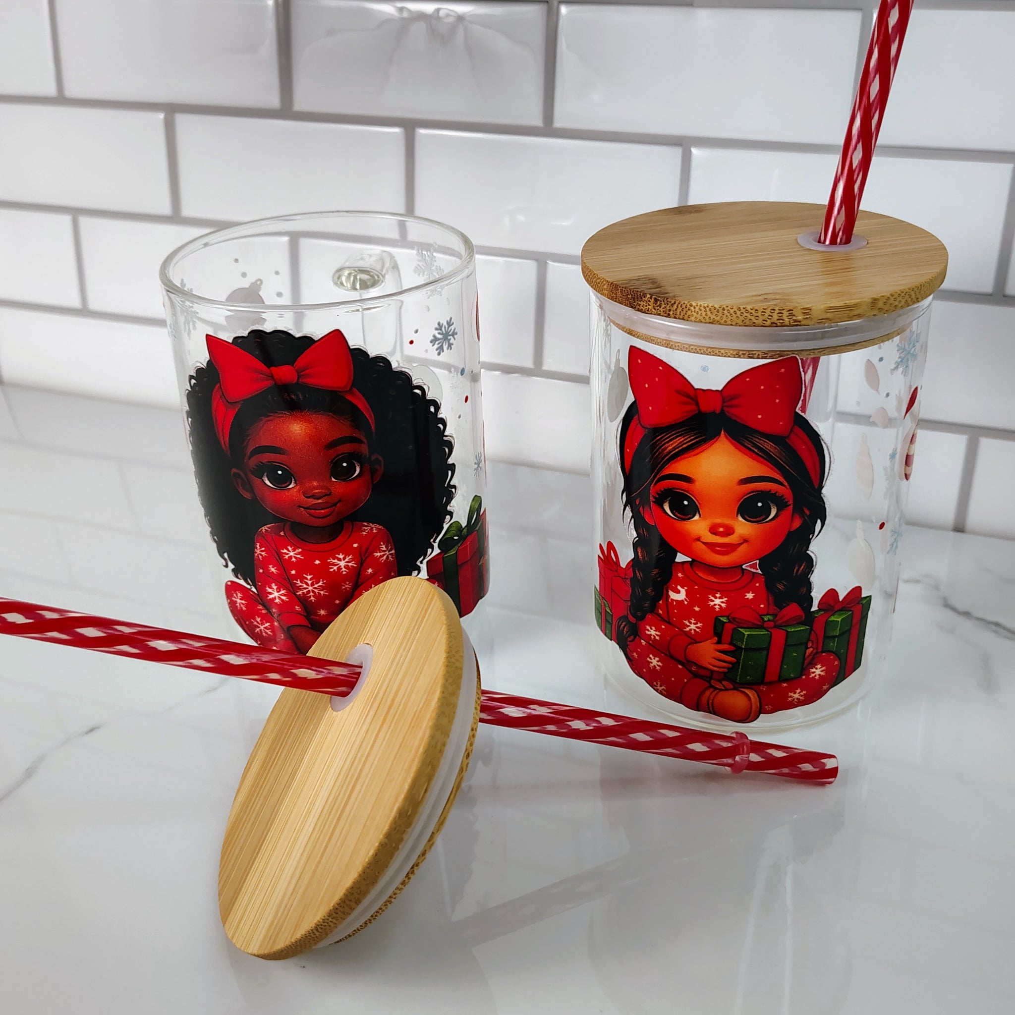 Celebrate the season in style with this charming 17oz Christmas mug featuring a cozy illustration of a girl nestled in festive pajamas, surrounded by wrapped presents on a crystal-clear borosilicate glass surface. This durable, heat-resistant mug is perfect for your favorite hot beverages and comes complete with a natural bamboo lid and a red-striped plastic straw. Whether you're sipping cocoa by the fire or sharing holiday cheer with loved ones, this thoughtful mug brings warmth and joy to your seasonal moments. A delightful gift for yourself or someone special who loves festive touches.